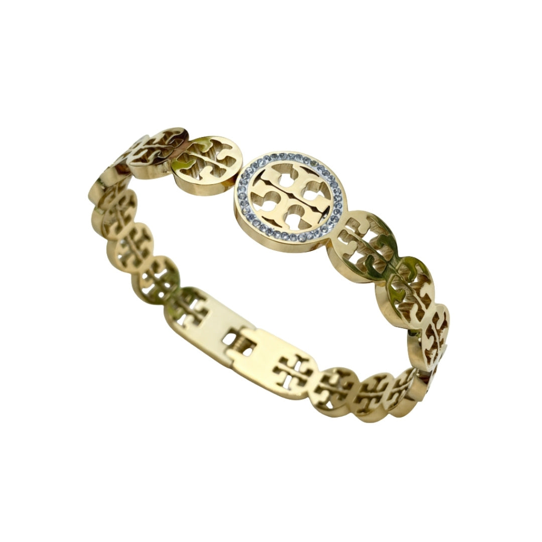 An elegant gold-plated hand cuff featuring a refined heart design. The adjustable open fit ensures comfort and versatility, making it perfect for daily wear or special occasions. A beautiful blend of charm and sophistication for every jewelry lover.