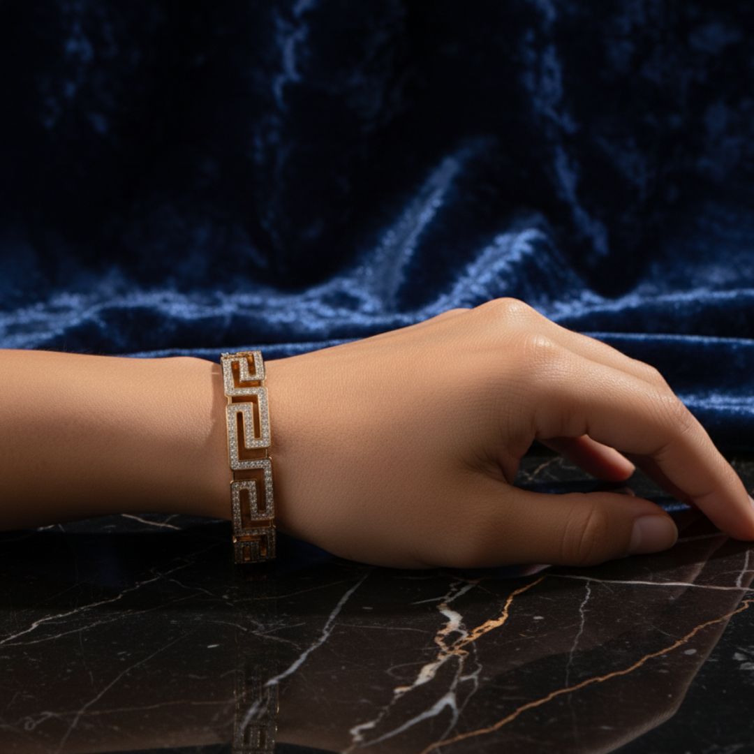 A beautifully detailed hand cuff with a smooth gold-plated finish and elegant heart centerpiece. The adjustable fit offers both comfort and style, making it a perfect match for modern and traditional looks alike.