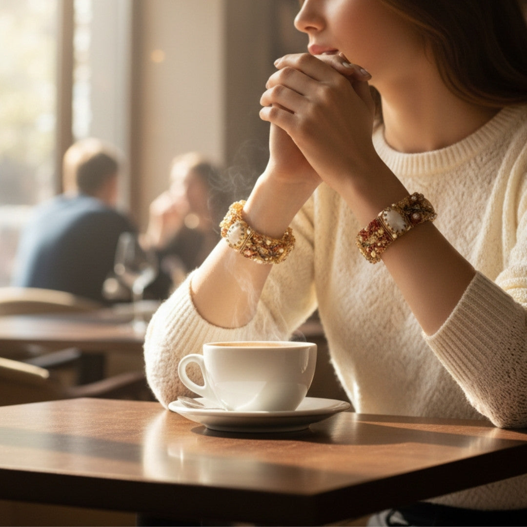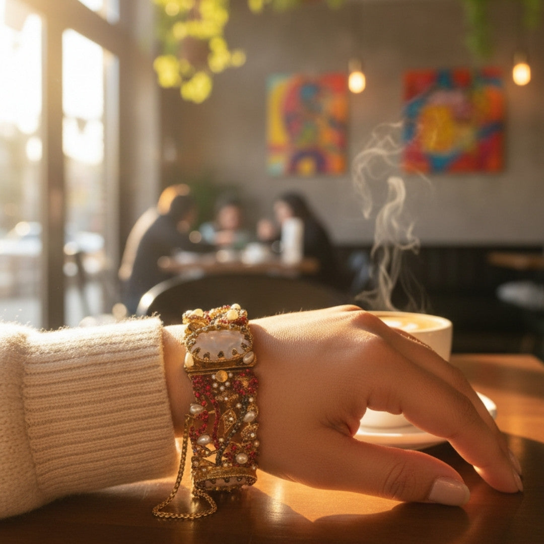 Turkish Zarcon Hand Cuff – Red & Gold Shine